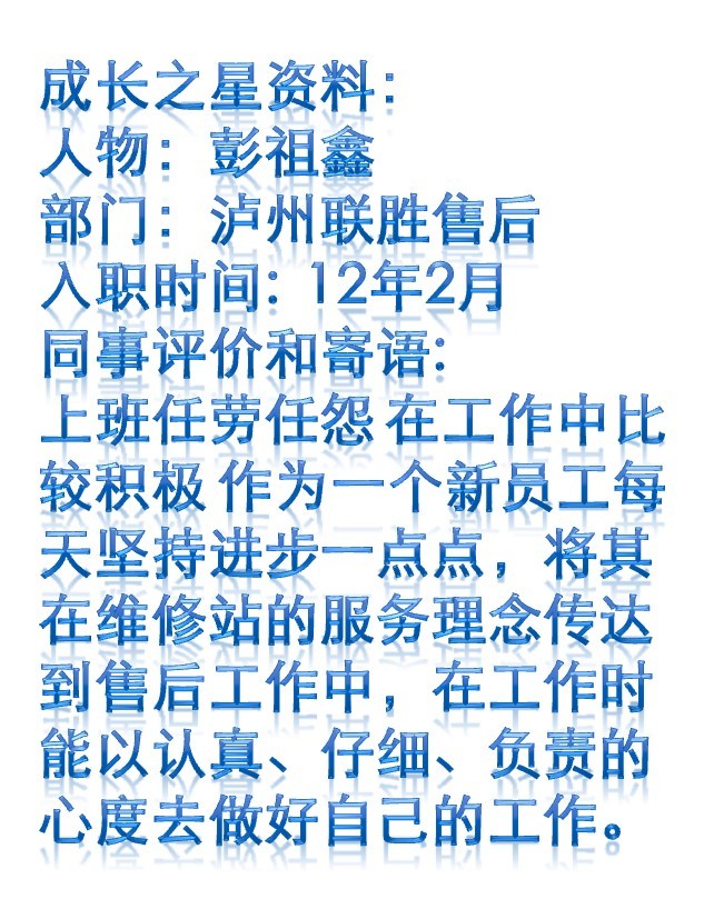 瀘州聯(lián)勝2012年6月成長(zhǎng)之星彭祖鑫